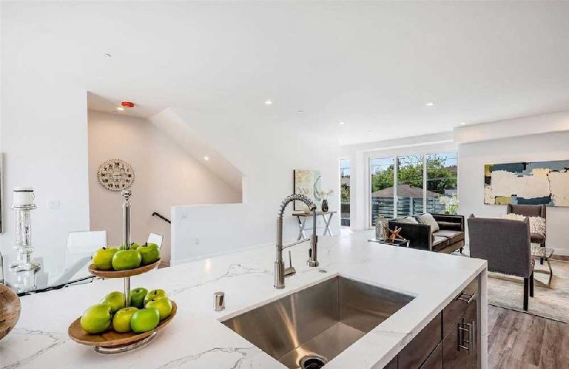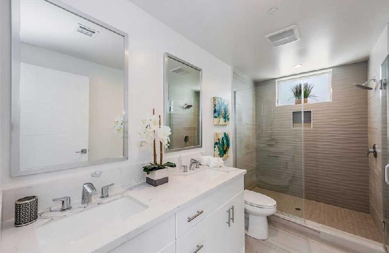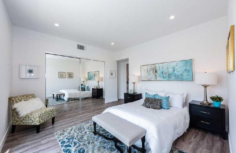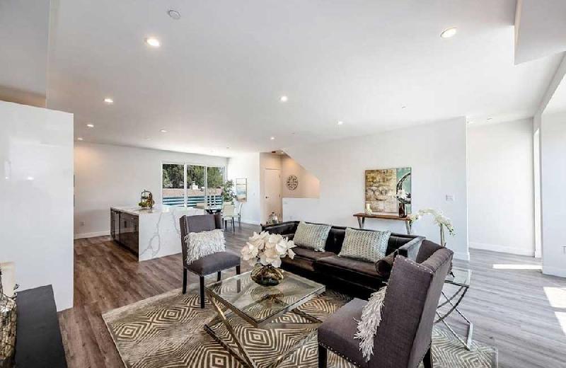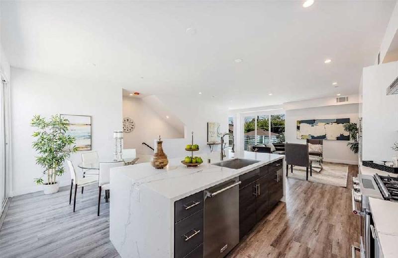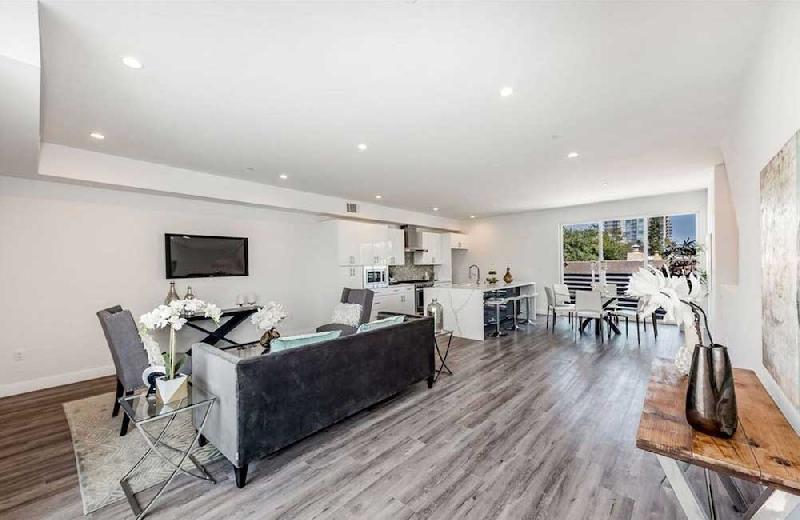 Residence 2 thru 5 features 3 bedrooms 3 full baths and powder room. One bedroom is downstairs or Flexplace/Office with its own full bath. These residences have a roof top deck with views for those warm LA nights. The master bedroom also features its own balcony. Each unit's Kitchen features custom cabinets and tons of storage space, beautiful Calacatta quartz kitchen counter-tops and island. Living rooms are filled with an abundance of natural light and a great place for entertaining.