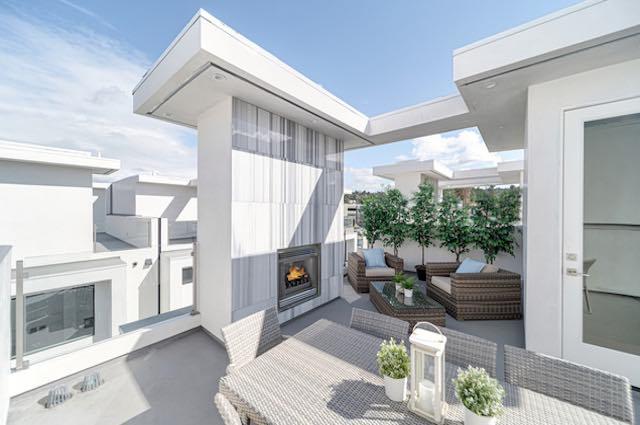 Contemporary details and expansive windows give the open-plan interiors an inviting and dynamic feel. The great room features a seamless flow between cooking, dining and living areas, with the kitchen’s countertop island serving as the central hub for gathering. Capturing far-reaching city views, the rooftop terrace is the ultimate outdoor space for lounging, dining and entertaining by the fireplace.