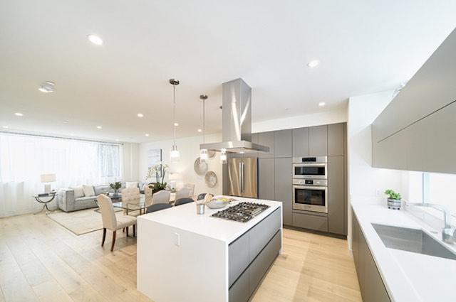 Residences feature a simple yet elegant aesthetic with contemporary finishes and fixtures including oak floors, polished chrome fixtures, brushed nickel pendant lights and stainless steel appliances.