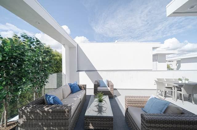 Nuparc Residences Sherman Oaks presents a collection of eight impeccably designed contemporary residences featuring bright, airy interiors and spectacular private rooftop terraces. Vibrant, geometric exteriors feature glass terrace walls while sleek, modern interiors are warmed by natural wood and stone accents.
