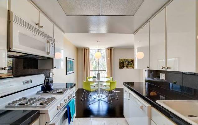 Olympic Manors Condominiums offers 27 units on 4 floors with two bedroom plans ranging from 1,000 square feet up to 2,000 square feet. They feature great layouts with floor to ceiling windows, fireplace in the living room, private patios and in-unit laundry. Many of the units have been upgraded in a variety of styles with finishes including hardwood floors, granite counters, custom tile and marble baths.