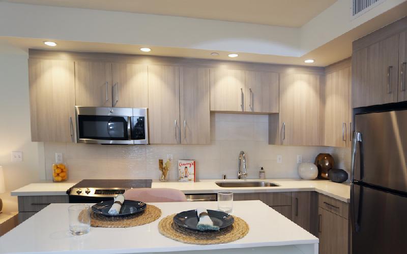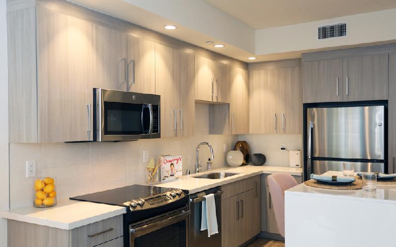 Each open-concept studio and one bedroom creates an interplay of light and space, with intuitive design. Enjoy light-hued hard surface flooring and quartz countertops that shine beneath the designer lighting package. Enhancing the premium finishes, tech-oriented comforts such as keyless entry, NEST thermostats and high-end GE laundry appliances come standard in every home. Select models may also offer luxe flourishes, including downtown views or Juliette balconies.