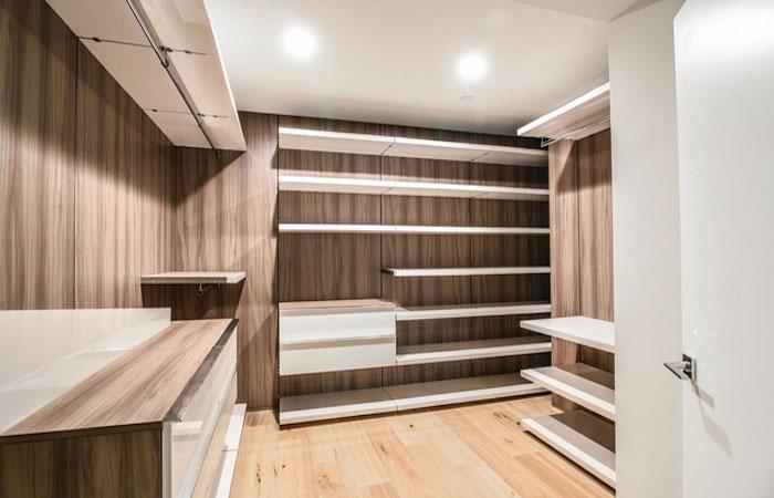 - Large walk-in closets with custom cabinetry