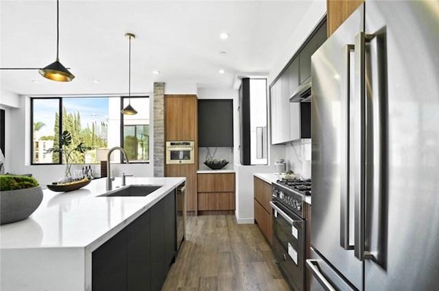 Pristine balconies coupled with impeccable interior layout and design guided the inspiration of these Valley Village masterpieces. SFH on a small lot subdivision. Equipped with custom modern finishes, Spanish "Porcelanosa" tile, porcelain countertops, gleaming hardwood floors, and beautiful brick paneling from floor to ceiling. Relaxing living room and master retreat. The gourmet kitchen contains high-end stainless appliances, shelving and abundant counter space, with a dramatic center island. The open layout offers optimal sunlight and designer lighting.