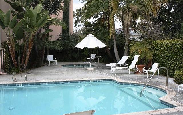 This cool mid century spanish style resort collection of towers offers a pool, spa & secured parking.