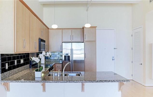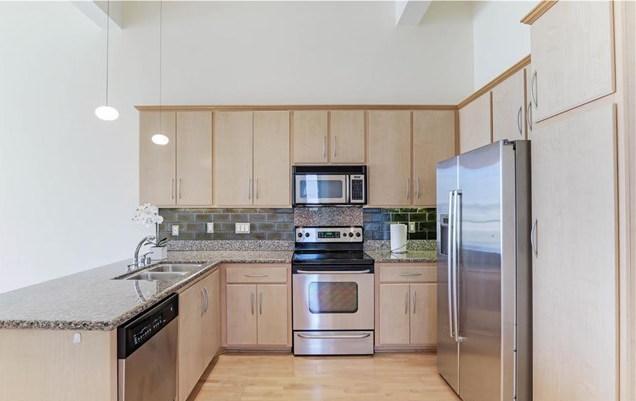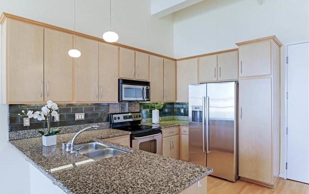 The LOFTS boast 13 foot floor-to-ceiling windows, wood flooring throughout, granite counters and black GE Monogram appliances in the kitchen and bathrooms with granite counters and travertine flooring.