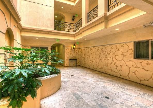 The units feature high ceilings & hardwood floors, gourmet kitchen with Stainless Steel appliances, Vera Gold granite & Italian cabinetry, luxurious bathrooms feature Italian noche countertops, decorative tile & rain shower heads. Custom wrought iron balconies & patios, inside laundry, 2 parking spaces, exercise room & open courtyard with Venetian plaster artwork complete this perfect place to call home.