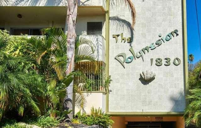 The Polynesian, built in 1962, is located in Franklin Village near Hollywood, right below Beachwood Canyon, the famous La Poubelle restaurant and Upright Citizens Brigade Theater. The Historic Polynesian Building has been beautifully restored to exceed the expectations of today's most discerning buyer without loosing the charm of days past. This classic Mid-Century building also falls under The Mills Act for historic properties which offers a great tax savings.