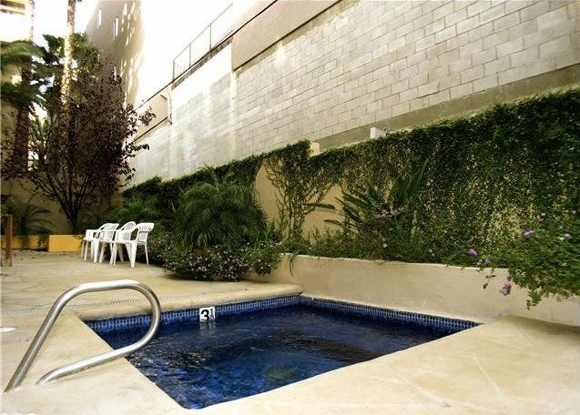 Amenities include controlled access, a pool, spa, dry sauna, secure parking and open outdoor patio space.