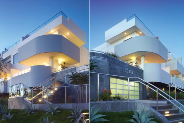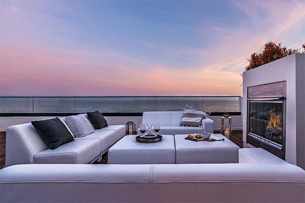 Panoramic views of the Pacific Ocean, multiple private terraces and state of the art appointments are among the many exceptional features of every spacious home in this exquisitely private residential enclave steps from the beach. Atop each residence, a fully appointed 500 square foot terrace surrounded by panoramic views that stretch from Palos Verdes, 50 miles to the south, to the majestic silhouette of the Santa Monica Mountains to the north, encompassing the luminous expanse of the Pacific Ocean and Santa Catalina Island among other dramatic sights. Every terrace is outfitted with Brazilian wood parquet decking, an eight person Jacuzzi spa, gas fireplace, and an integrated audio system, creating the ideal year round at home escape from sunrise to sunset and beyond. Connections for gas and electric enable residents to create the perfect summer kitchen and prewiring for data and video enables the use of digital devices and outdoor television.