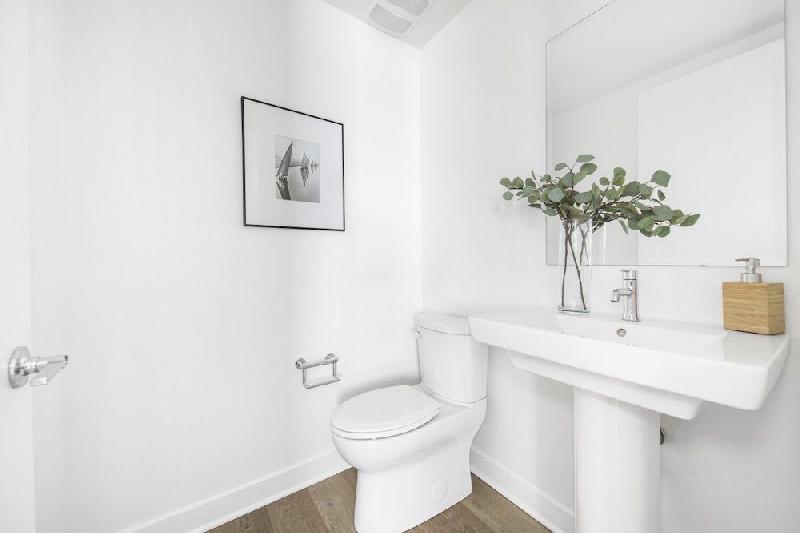 - Luxury vinyl plank flooring at entry, kitchen, living, dining and powder