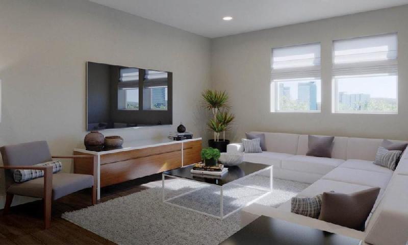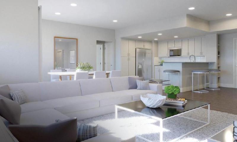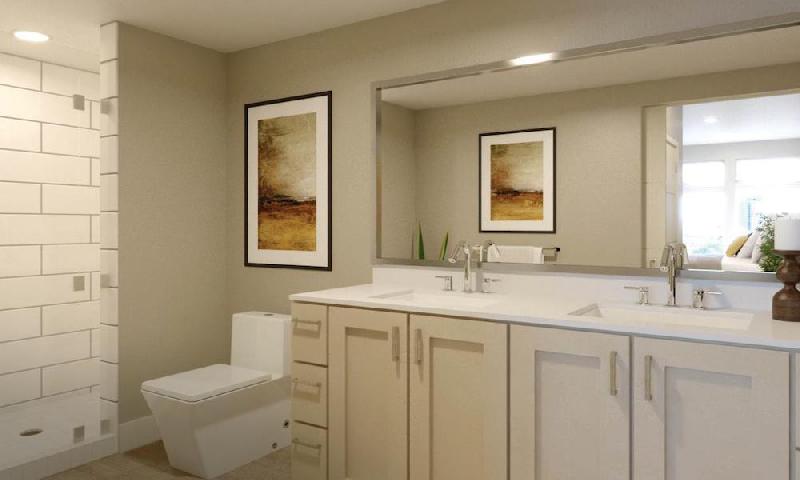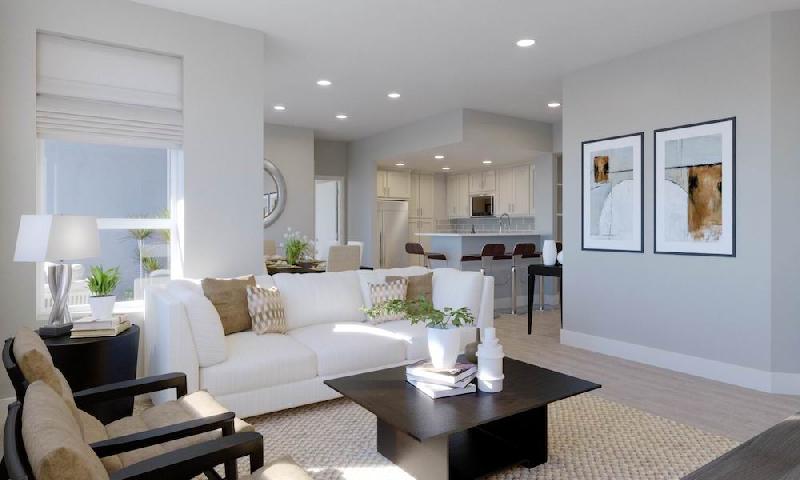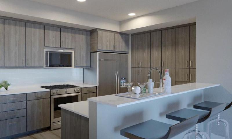 Seabluff at Playa Vista offers 75 units on 4 floors with two and three bedroom layouts raging from 1,100 square feet up to almost 1,700 square feet. The homes feature a contemporary classic coastal design scheme with gray shaker cabinets throughout, Bell Statuario quartz counters in the kitchen, Kitchen Aid stainless steel appliances, in-unit laundry and private patios.