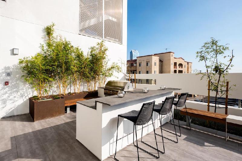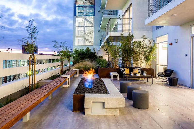 - Secluded Outdoor Lounges with fire pits and endless views of the Downtown LA skyline