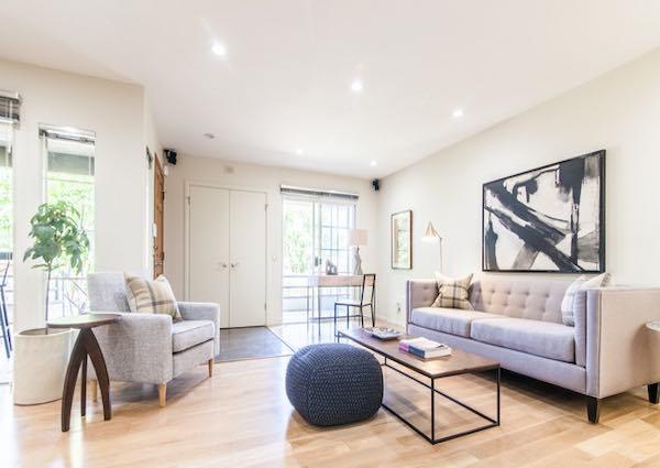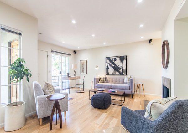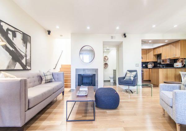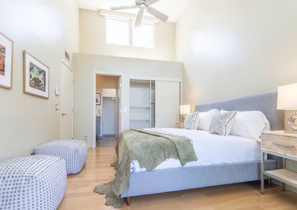 Silver Lake Hilltop offers 10 townhomes on 3 levels, with two bedroom layouts, ranging around 1,200 square feet. They feature double door entry, large living room with fireplace, recessed lighting, in-unit laundry and kitchen with breakfast bar. Upstairs is the master bedroom suite with soaring ceilings, huge windows, ample closet space, double sinks in the master bath, loft space, and its own private balcony. The guest bedroom features high ceilings with a skylight, en suite bath, and another balcony.