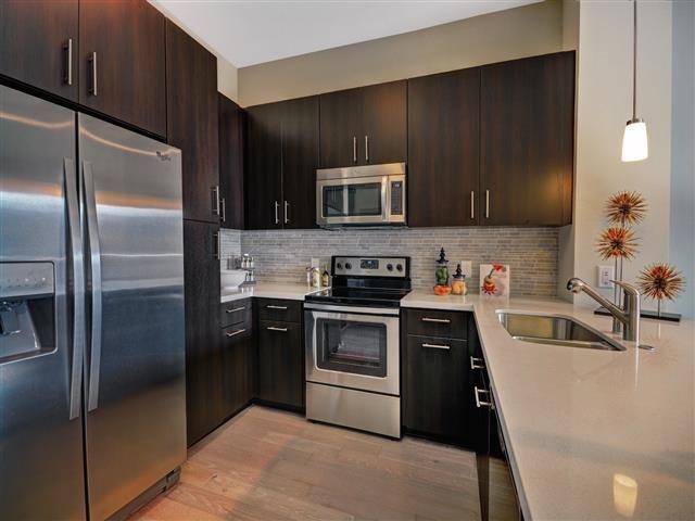 - Open-Concept Kitchens with Stainless Steel Appliances, Granite Slab Countertops and Custom Cabinetry