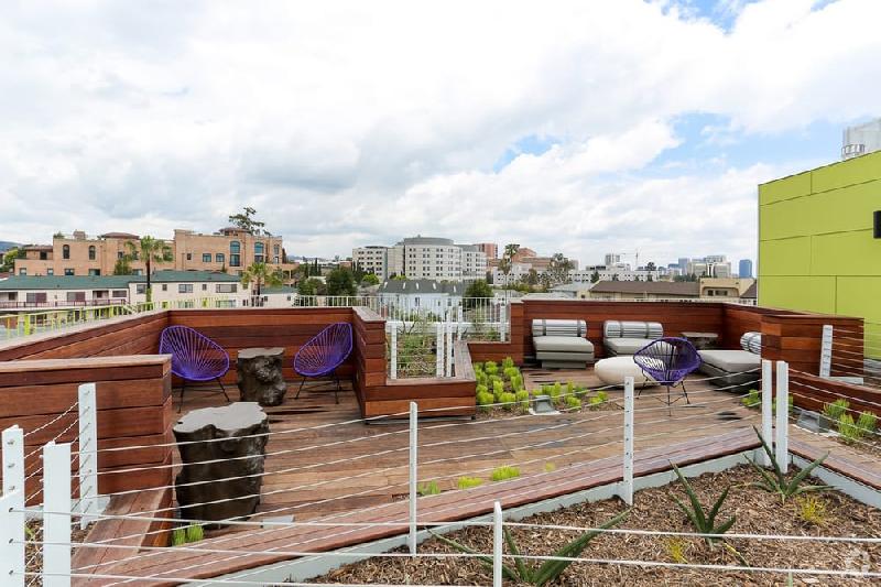 - Three beautifully furnished and lushly landscaped rooftop decks with incredible views