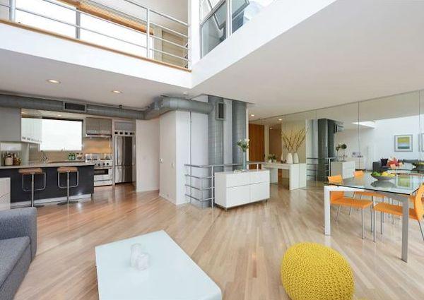 Suntech Townhomes offers 18 units with two bedroom layouts ranging around 1,700 square feet. They feature two-story glass walls, exposed structural steel and ductwork, industrial light fixtures and metal railings that celebrate the machine aesthetic. They boast private rooftop decks, loft areas, a fireplace in both the living room as well as the master suite and gourmet kitchens with breakfast bar.