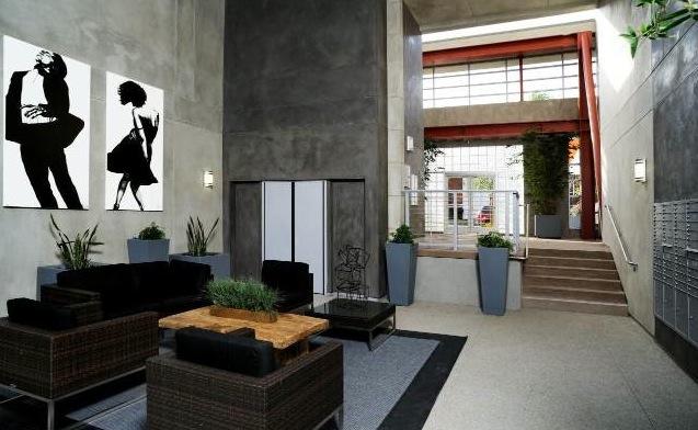 Contemporary architecture, private lobby with elevator and secure access system, landscaped courtyard with spa and BBQ area, community conference room and workout area, covered and gated parking, bike racks, two parking spaces per loft, ample guest parking & 18 electric car charging stations.