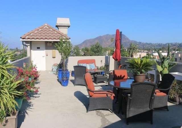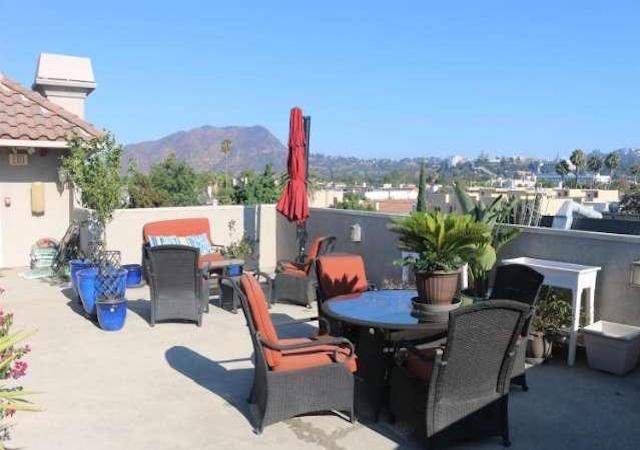 Amenities include controlled access, secure parking and rooftop patio with terrific views of the Hollywood Hills.