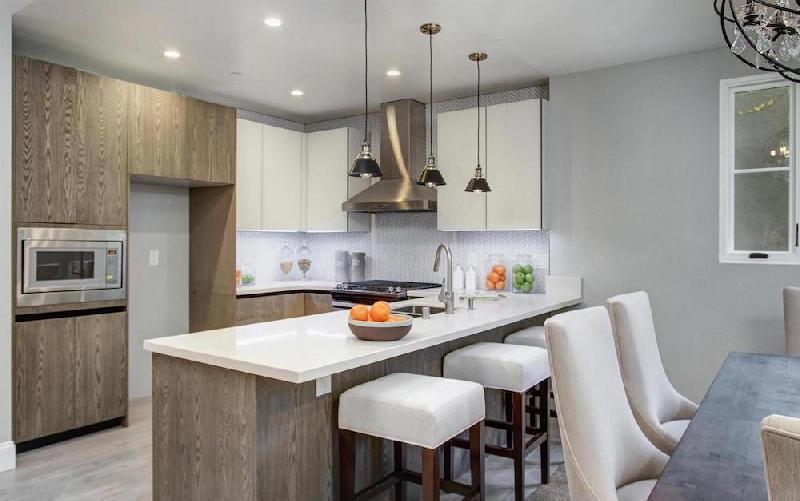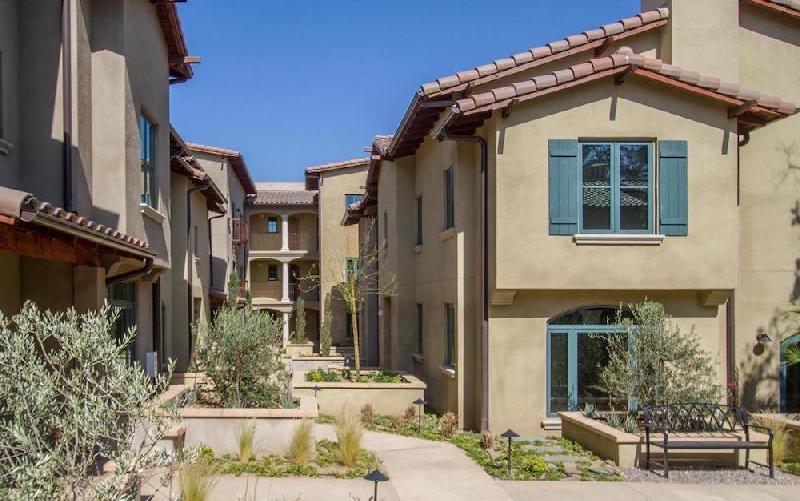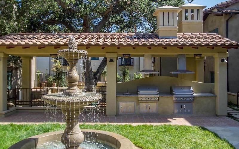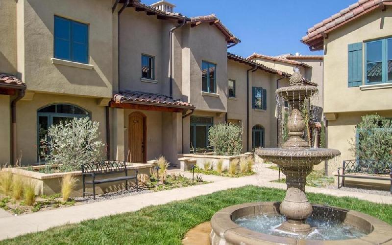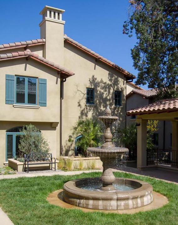 These warm Tuscan Vernacular style residences have been perceptively designed to embody the charm and character of a luxurious California lifestyle. Inside, the elegant environments are filled with natural sunlight dappled by the foliage of mature trees. Broad windows and French doors look out on the leafy picturesque Old World courtyards. Lovely period details add subtle visual richness at every turn with soft accents of recessed lighting. Upscale elements include European style porcelain tile floors, high grade Berber wall-to- wall carpeting, and flooring inspired by wide-plank wood. European style kitchens are appointed with high-end appliances, custom stained wood, and frosted glass cabinets.