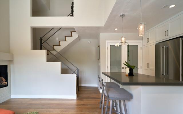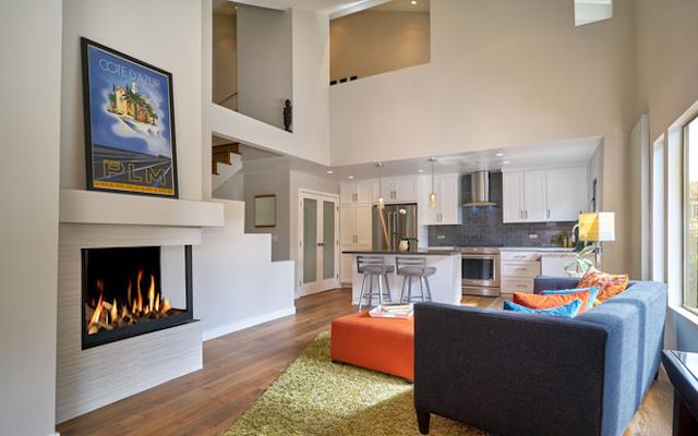 The Treehouse offers 8 units, on 3 floors, ranging around 800 square feet. They feature open concept main living spaces with spacious living room, dining area, kitchen and vaulted ceilings. There are fireplaces in both the living room and master bedroom, which also features an en-suite bathroom, walk-in closet, laundry, and a private enclosed outdoor patio. There are second loft-style bedrooms on the third level.