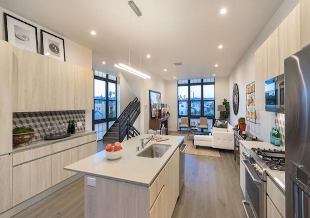Every home comes with a private, attached two-car garage, a versatile downstairs den or office, and an open-plan kitchen equipped with high-end appliances perfect for cooking and entertaining. With two or three spacious bedrooms, each featuring its own closet and bathroom, these homes are designed for comfort and convenience. The highlight of each residence is the finished rooftop deck, often referred to as “the best room in the house,” complete with a built-in grill and wet bar ideal for hosting gatherings while enjoying jaw-dropping views of sunsets, Downtown LA, and the Hollywood Hills.