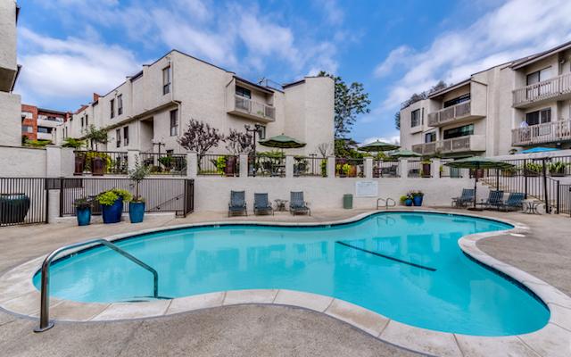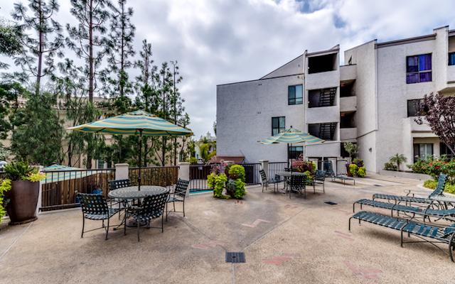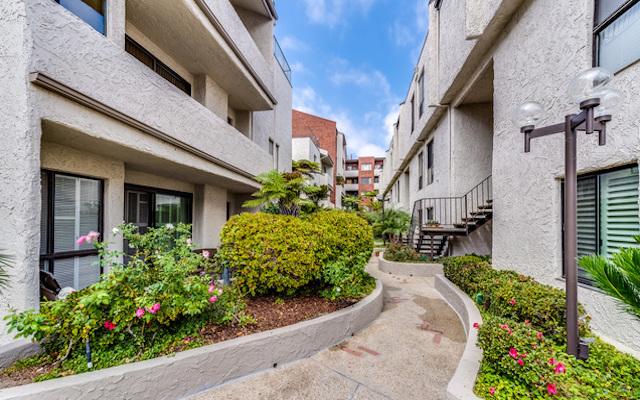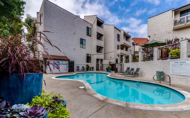 Via De La Paz offers 107 units on 3 floors with two bedroom plans ranging from 1,100 square feet up to 1,700 square feet. They feature high ceilings, large scale windows, fireplace in the living room, wet bar, in-unit laundry and private patios. The kitchens offer an abundance of cabinet space and breakfast bar. The spacious master suites include walk-in closets and en-suite bath with separate shower and tub. Many of the units have been upgraded with hardwood floors, recessed lighting, granite counters, custom cabinetry and designer baths.