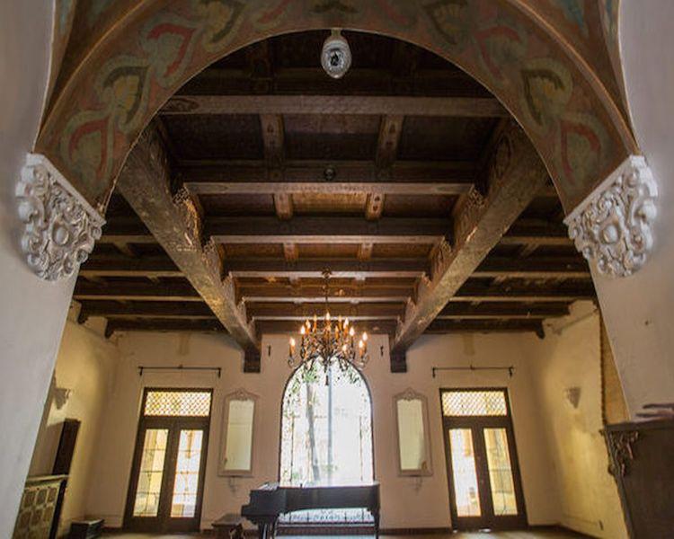 Architect Arthur Harvey designed a "flamboyant Churrigueresque" building filled with hand-painted and hand-carved details, and outfitted with the most luxurious amenities of the day, including soundproofing and central refrigeration. Over the decades, as Hollywood became dirty and neglected, the paint on the beams at the Villa Carlotta faded and a more lowkey set of artists, musicians, actors, and others moved in, making the place their own, painting and decorating and creating a close-knit community, subletting as they left for film shoots or tours, under what was for years a laissez faire management and with rents kept low by the city's Rent Stabilization Ordinance.