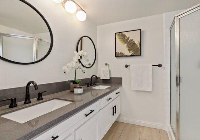 Villa Margarita townhomes feature an open kitchen with breakfast bar, a living room with fireplace and a large private patio. The downstairs living space also includes a half bathroom and laundry area. Upstairs are two bedroom suites, each with their own bathroom and plenty of closet space.
