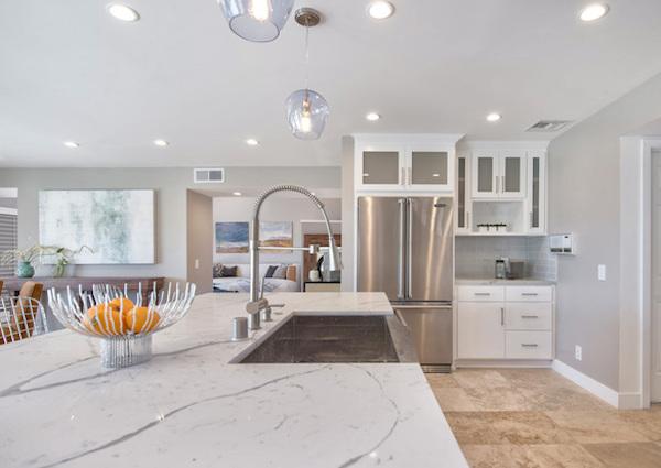 Villa Del Mar offers 25 residences on 3 floors with two, three and four bedroom plans ranging from 2,100 square feet up to 3,500 square feet. They feature gated interior courtyards, direct access two-car garages, skylights and expansive outdoor decks and patios. They boast spacious formal living rooms with vaulted ceilings, fireplace and wet bar, formal dining room, large den with a fireplace and eat-in kitchens with center island. The master suites have vaulted ceilings, fireplace, walk-in closets and large decks. The master baths offer dual sinks, large soaking tub and separate shower.