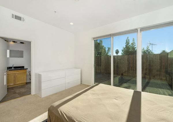 The Waterloo Town Lofts feature hip, live-work designs with open, light infused residences in which to cast your ideal vision of life lived well. Enjoy bamboo floors on the first level with open living/den/dining/kitchen and patio. The bamboo stairs lead to library hallway with carpeted master suite plus 2nd bedroom and bath. The master suites open to large rooftop patios with views of the magnificent Downtown skyline or the Hollywood Hills.