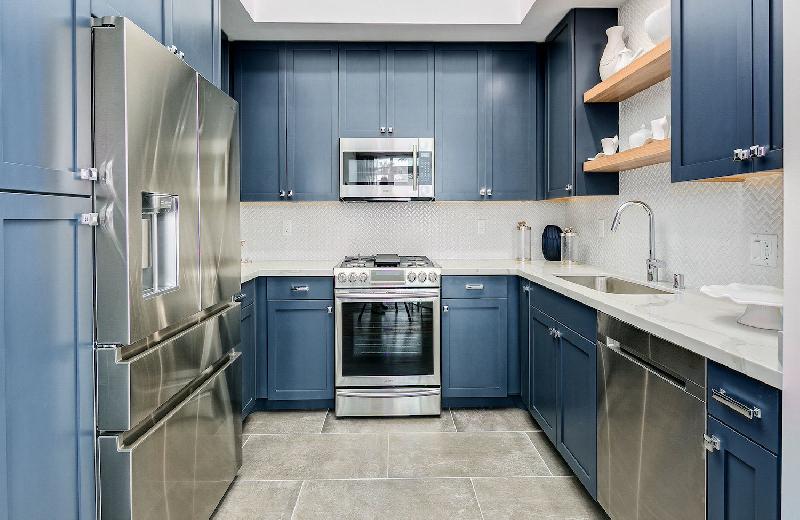 - Stainless steel Samsung appliances including a built-in microwave in every residence