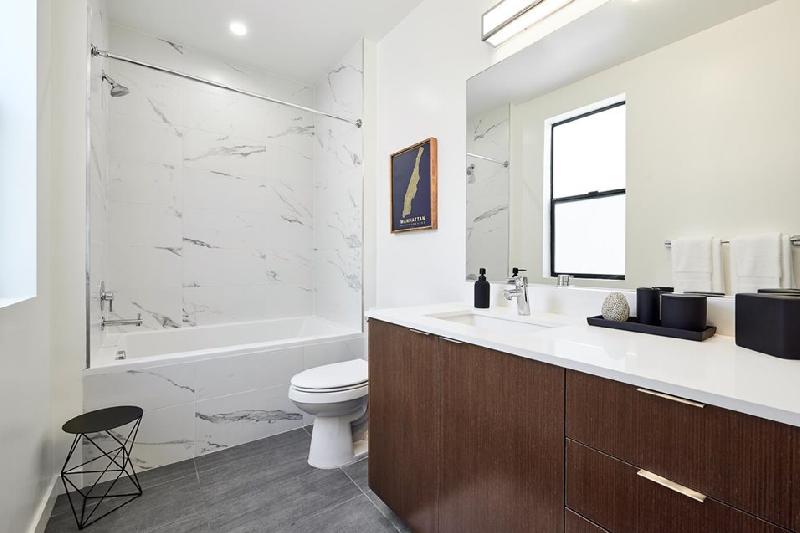 - 36” Deep Soaking Tub with Porcelain Marble Tile Showers