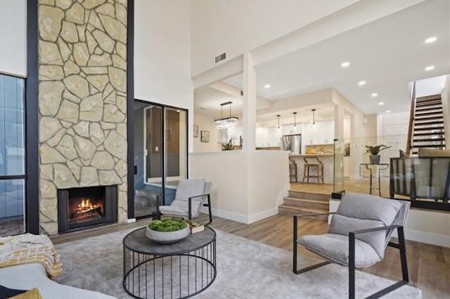 White Oak Encino offers 55 units on 3 floors with two and three bedroom layouts ranging from 1,100 square feet up to almost 1,900 square feet. They feature formal entry, floor -to-ceiling windows, a fireplace in the living room, wet bar, in-unit laundry and kitchen with breakfast bar. The master suites offer a walk-in closet and ensuite bath with dual sinks, soaking tub and separate shower. The penthouse residences boast soaring vaulted ceilings and double height windows.
