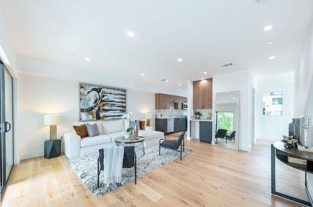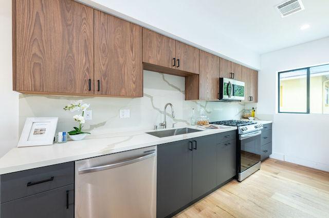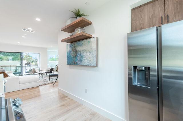 Whitsett Califa Collection offers 4 homes, available in three bedroom layouts, ranging around 1,600 square feet. These sophisticated contemporary showplaces feature clean, architectural lines with oversized private 2 car garages and private entrances. These light and bright floor plans feature engineered white oak wide-plank floors, black anodized Milgard windows, quartz stone counters, recessed lighting, stainless Samsung appliances, Navien 240 tankless water heaters and Baldwin brand door locks/handles. There's even a bonus space for a wine fridge, or a 2nd dishwasher. Wonderful primary suites with 2 additional bedrooms, and 2 balconies, complete these stunning residences.