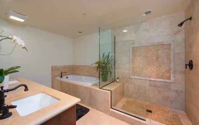 - Travertine Bathrooms with Mosaic Accents