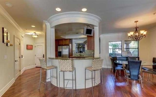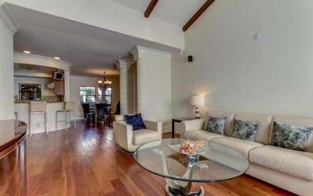 Woodbridge at Toluca Lake offers 23 units on 3 floors with two bedroom single land multi-level plans ranging between 1,300 square feet up to over 1,600 square feet. As you enter through a luxurious lobby you are welcomed by a lush courtyard with fountains and sitting areas. The residences feature open layouts, hardwood floors, crown moldings, recessed lighting and fireplace in the living room. They boast coved ceilings in the dining room and master bath. The penthouses feature soaring, wood beamed vaulted ceilings. The kitchens offer wood cabinetry, granite counters, mosaic tile backsplash, stainless steel appliances and breakfast bar. The master suites offer an abundance of closet space and ultra luxurious spa like master bath with dual sinks, large tub and separate shower.