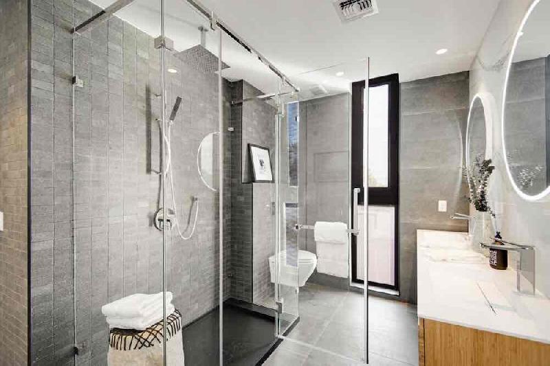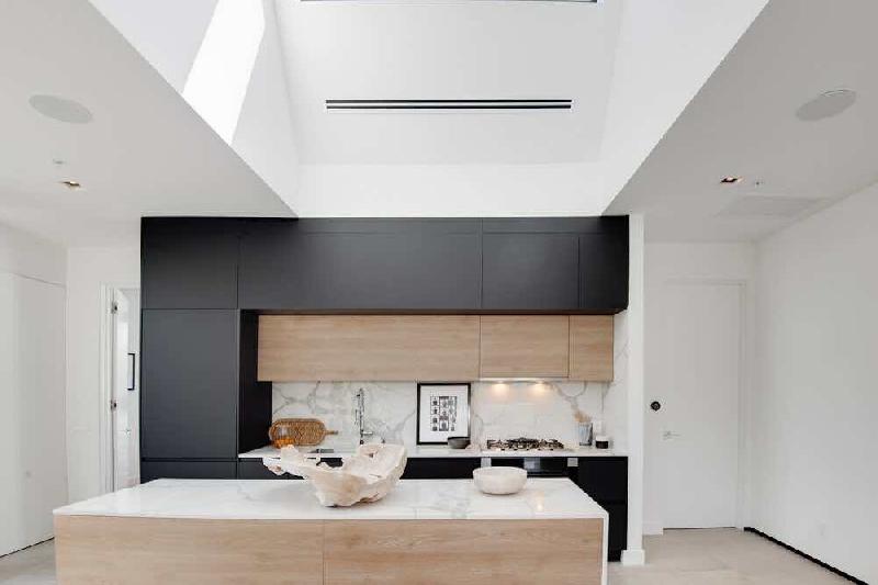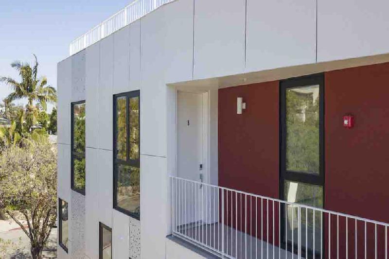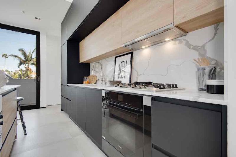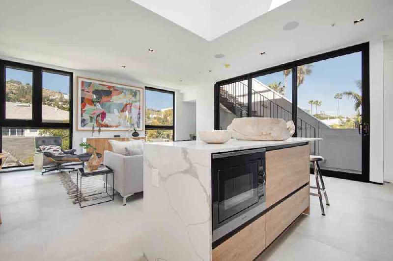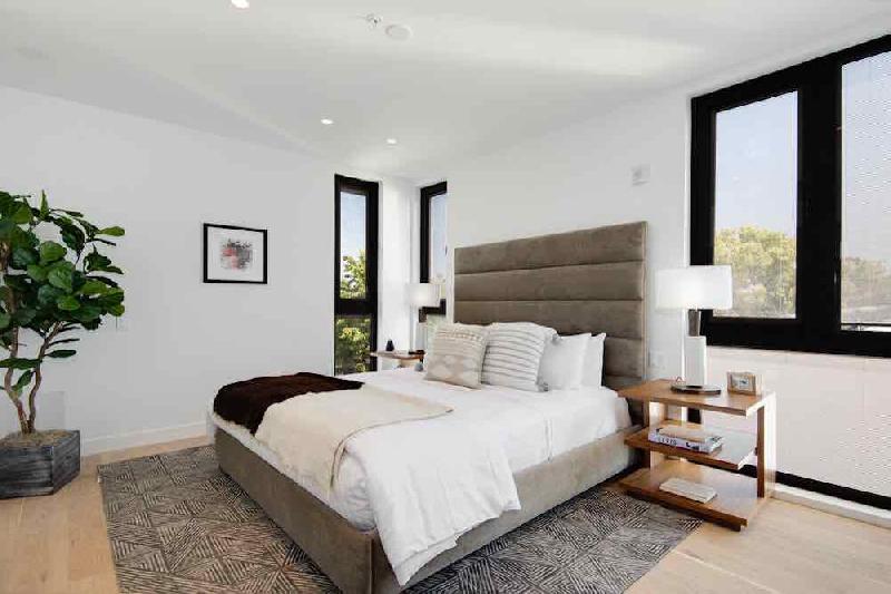 The residences feature innovative, sustainable architecture by award-winning Los Angeles-based firm LOHA with sophisticated interiors. Luxurious two-bedroom townhome and one bedroom units feature airy, open-plan living with nine foot ceilings, maximizing light, volume and depth. You walk across large format Italian tile and European white oak floors. Each residence has a chef-caliber, edgy European-styled kitchen, boasting a waterfall-style island, complemented with Miele Appliance suite. Exquisite master suites feature walk-in and wardrobe custom cabinet grade closets and master baths with floor-to-ceiling Italian porcelain tiled walls, and vanities with Corian top. The units feature triple glazed windows for energy, sufficiency, sound, and control and include integrated window blinds.
