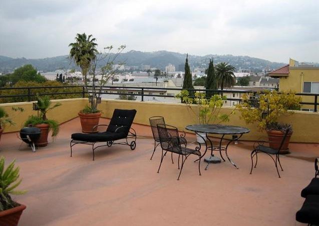 828 Hudson, built in 1989, is a Spanish inspired development close to studios, Larchmont Village and Melrose shopping. The building features a beautiful courtyard with tropical plants and fruit trees, decorative ironwork and a gorgeous rooftop patio with sweeping views of Hollywood and the hills.