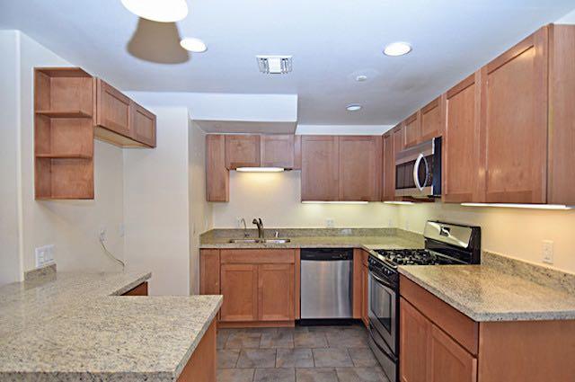 Arena Cove Villas offers 12 units on3 floors with two and three bedroom layouts ranging from just under 1,200 square feet up to over 1,900 square feet. They feature high ceilings, hardwood floors, recessed lighting, private patios, in-unit laundry and gourmet kitchens with granite countertops and stainless steel appliances. The master suites include walk-in closets and luxurious master bath with dual sinks, large tub and separate shower.