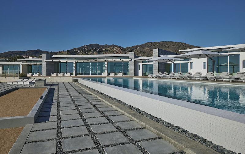 The butterfly roof line, dramatic overhang and pools of water frame the entrance for a masterfully designed front walkway. The entrance is outfitted with custom teak windows that tower above you and your guests as you are invited to take in the beautiful Malibu landscape. This 133-foot infinity pool, overlooking the Pacific Ocean, is bookended by two spas and features a Baja shelf that spans the length of the pool, allowing for ultimate relaxation and incredible entertainment opportunity. Hidden beneath the infinity pool is a fitness center equipped with state of the art exercise machines and the same uncompromised view found throughout the rest of the private residence.