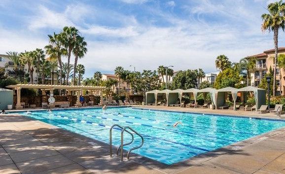Residents can also enjoy the amenities of the Center Pointe Club, which has a gym and a pool area. The pool features a Jr. Olympic size pool with solar heating, a small oval shaped pool for children and a spa. The fitness center features cardio equipment with cable television access connected to the machine. There are also free weights and conveniently next to the fitness room is the locker room, which has showers. Playa Vista has a full-service business center equipped with computers, a printer and a fax machine. The business center is conveniently located in the Center Pointe Club. There is also a screening room with twenty-three theater style seats.