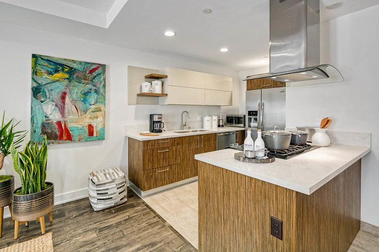 Del Mar Gardens offers 17 contemporary condominiums available in studio, one, two and three bedroom plans ranging from 600 square feet up to almost 2,200 square feet. Their unique architectural style features clean, modern designs, understated sophistication, abundance of natural light and open floor plans to enjoy a low maintenance lifestyle. Its exterior space offers a minimalist garden courtyard that is interlaced with lounge seating areas and features an outdoor fireplace to cozy up to.