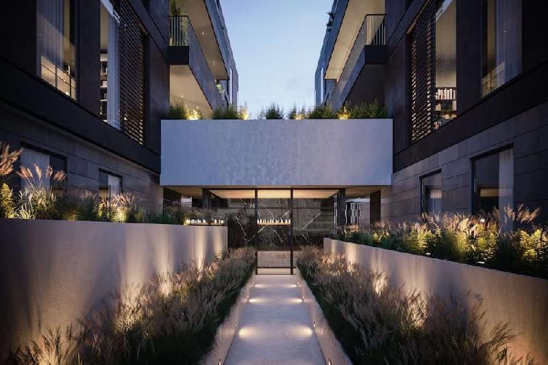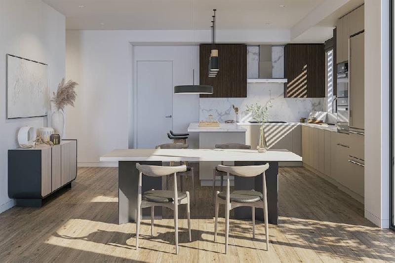 Residents enjoy exclusive amenities, including a dedicated concierge attendant, a striking lobby enveloped in floor-to-ceiling glass, an outdoor pizza oven and barbeque area, boutique gym and lounge, bike storage, and secure underground parking.