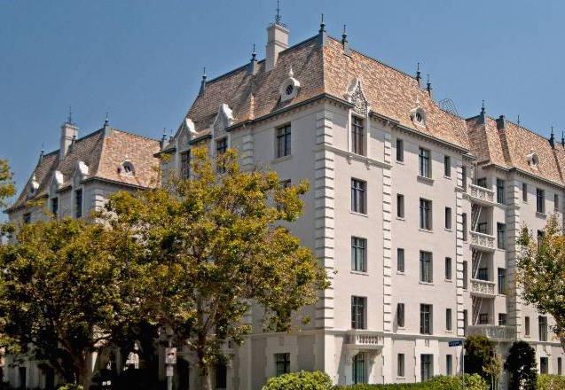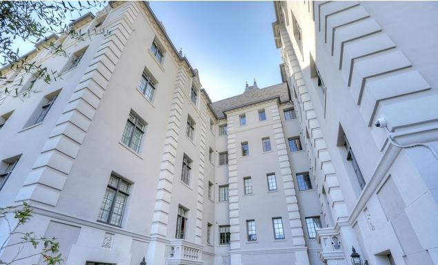 Faubourg St. Denis, built in 1928 and designed by architect James N. Conway, is located in Citrus Square between the Miracle Mile and Hancock Park only minutes to the Wilshire Country Club. The building was originally built as apartments with one apartment on each floor, the building was converted in 1987 now with 4 units per floor. The building facade is balanced symmetrically around a vertical centerline. Exceptional period details abound, Quoin stones line the corners, slate tile roof with louvered dormers and pinnacles, chimneys, wrought iron finials, balconies with balustrades and decorative corbels keep the eyes engaged.