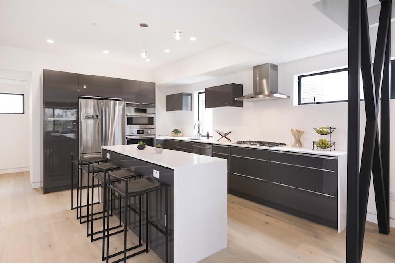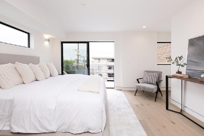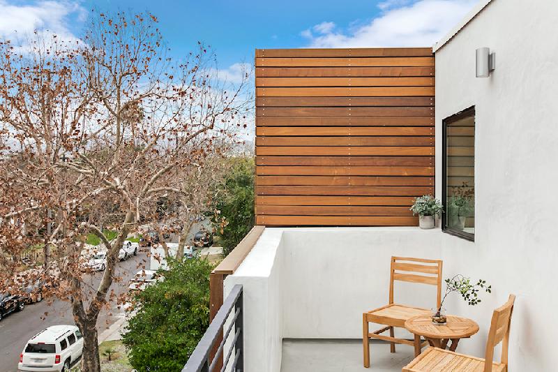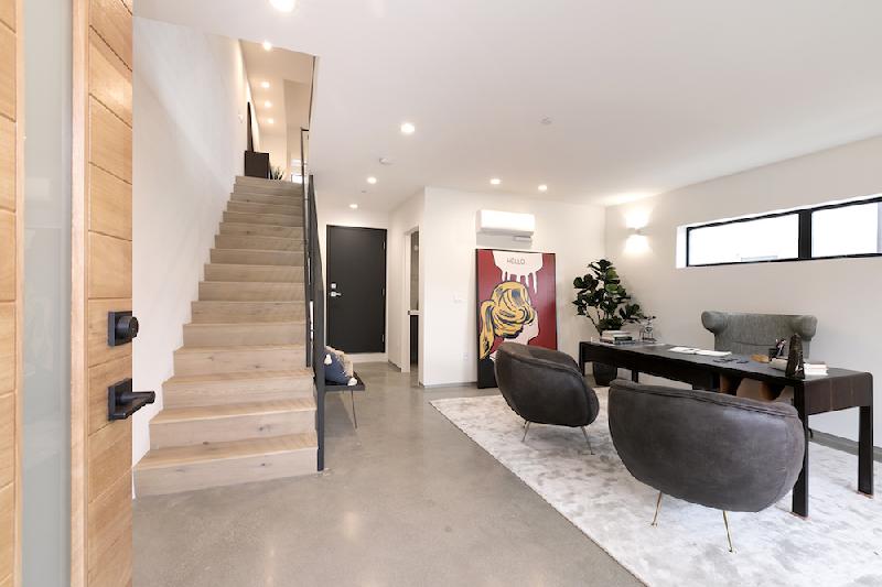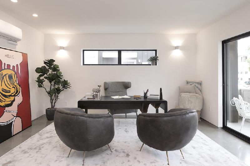 Built under LA's Small Lot Subdivision with low monthly maintenance fees. Each home features two bedrooms with en suite bathrooms and a ground level flex space with half bath, perfect for an office or studio. The light and bright 2nd level is an open concept kitchen, dining area, and living room with half bath and pocket balcony.