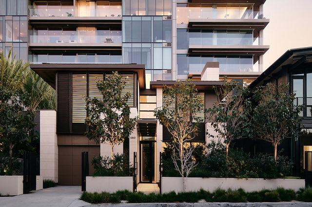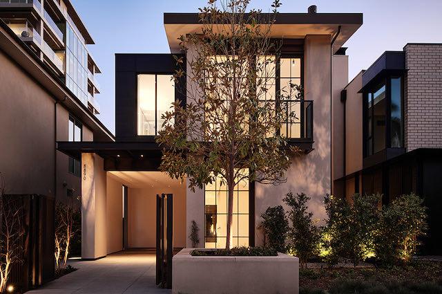 One of the largest homes available among the Houses at 8899 Beverly, Stone House offers a stately and refined presence, deftly balancing the softness of light champagne steel and boldness of heavy limestone.