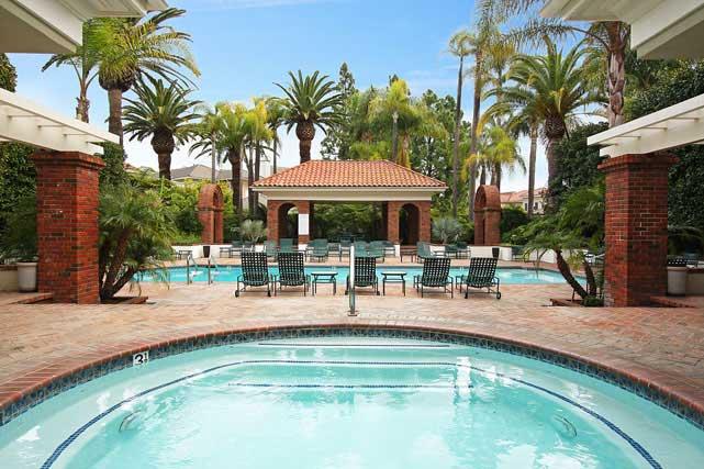The Ridge townhomes offer between 3,000 square feet up to 4,000 square feet and are available in 2, 3 and 4 bedroom layouts. There are 4 floorplans in the Ridge; The Bristol, The Ashford, The Coventry and The Dorchester. They boast voluminous light filled spaces, grand living rooms with fireplace and wet bar, elegant formal dining rooms, French doors that open to private beautifully landscaped courtyards and spacious yards with water features, spas and barbecues. The gourmet kitchens feature an abundance of cabinet space, center island and spacious breakfast area. The master suites offer an incredible amount of closet space and master bath with dual sinks, soaking tub and separate shower. Some of the townhomes include loft areas and have converted the dens into additinal bedrooms.