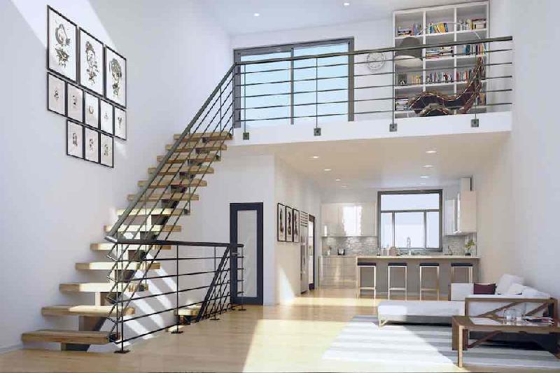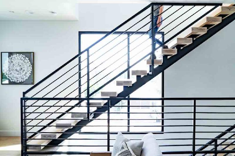 - Noteworthy floating stairs constructed with solid maple wood steps