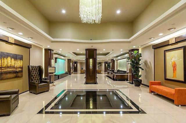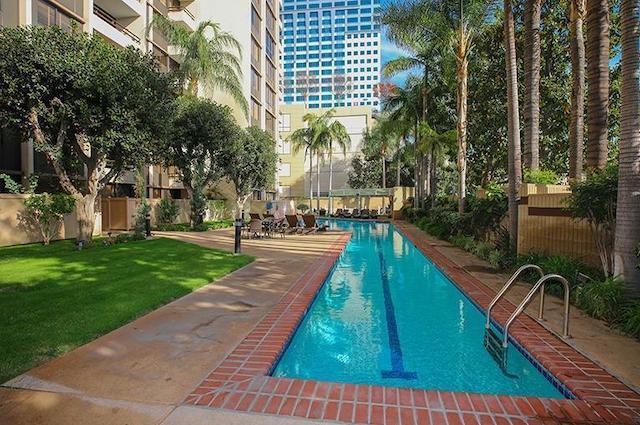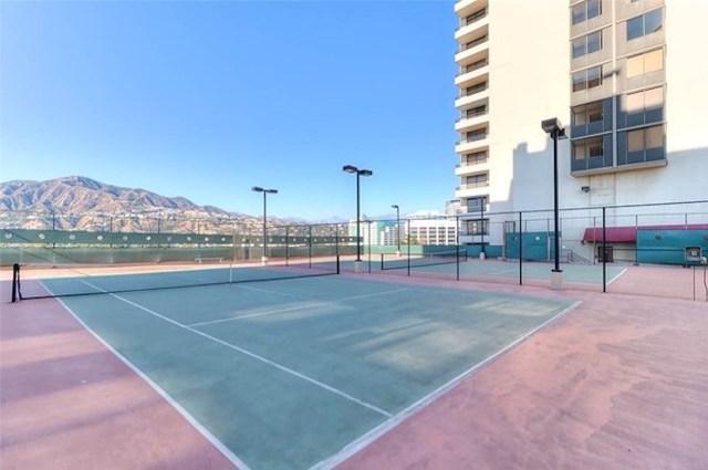 Enjoy resort style amenities with 24 hr security personnel, a conference room, 2 oversized pools, indoor and outdoor spas, gym with modern exercise equipment and televisions, sauna, locker rooms, tennis courts, racquetball & basket ball courts, BBQ deck and a 2 story recreation room for private parties with full kitchen equipment overlooking skyscrapers in Downtown Los Angeles.